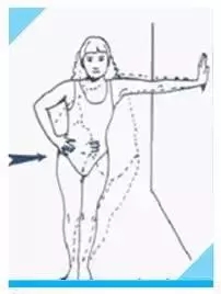 一側(cè)上肢支撐墻面,另側(cè)上肢輔助髖關(guān)節(jié)緩慢下墻面活動。